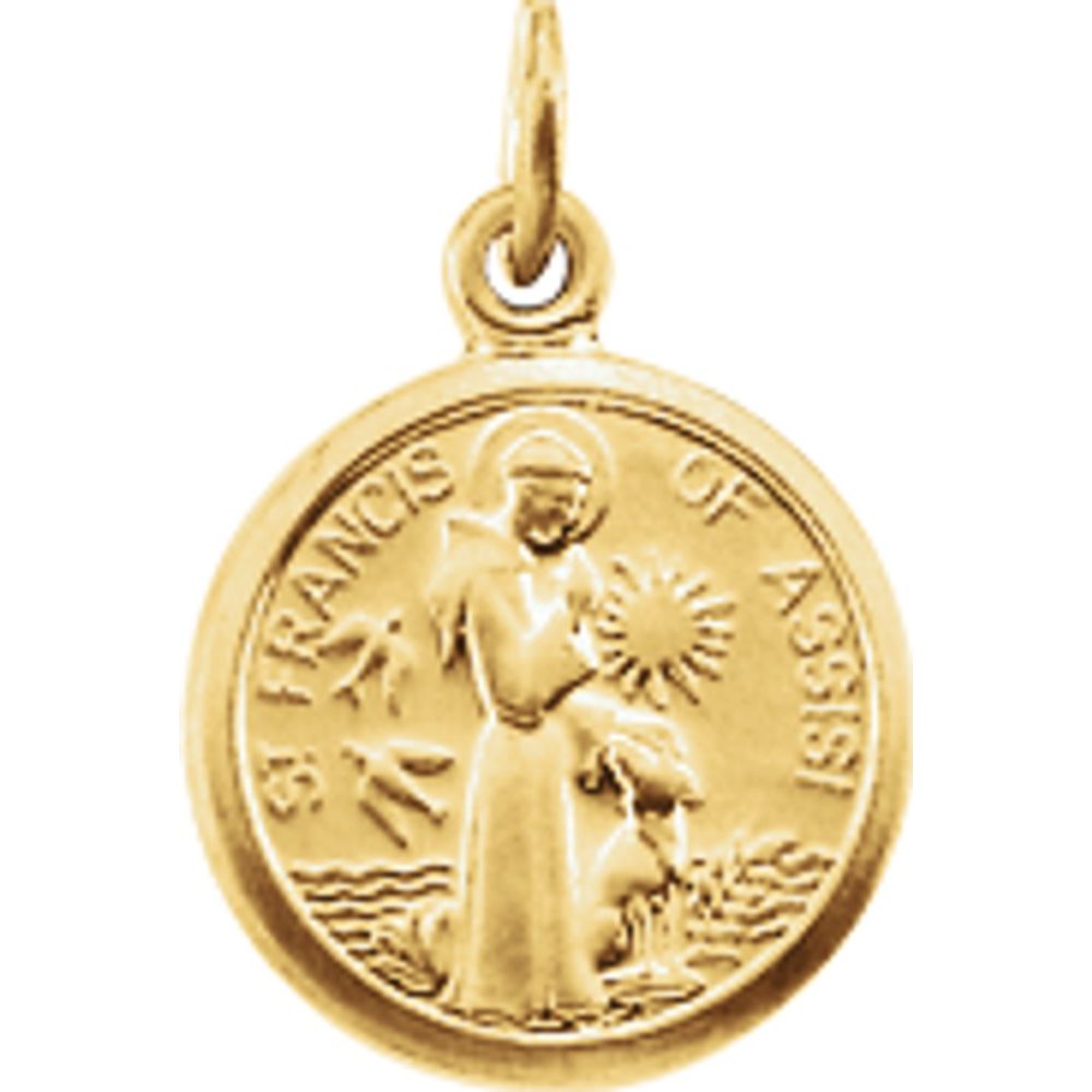 Description: 14k Yellow Gold 10.15x12mm St. Francis of Assisi Medal