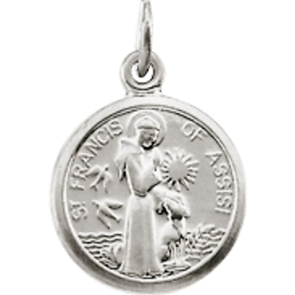 Description: 14k White Gold 10.15x12mm St. Francis of Assisi Medal