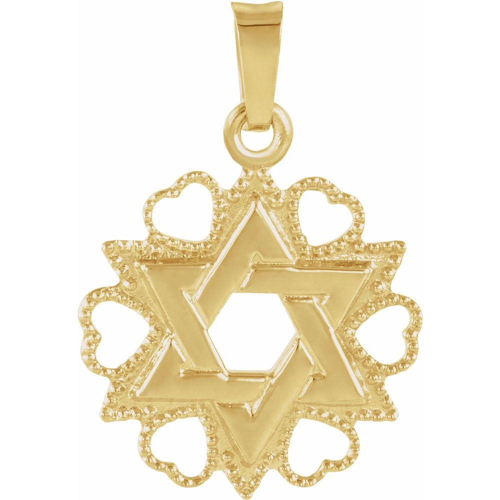 14k Yellow Gold Star of David Religious Jewish Judaica Pendant (18x15mm)