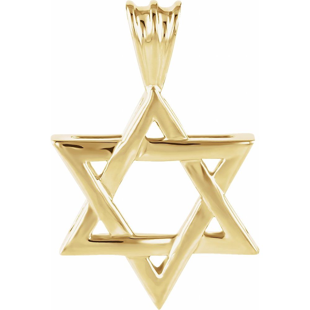 14k Yellow Gold Star of David Religious Jewish Judaica Pendant (22.5x15.3mm)
