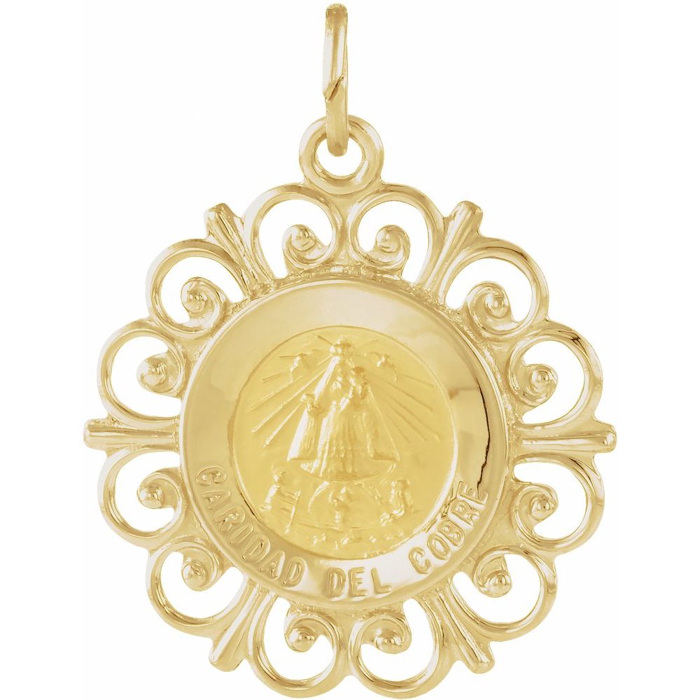 Description: 14k Yellow Gold 18mm Caridad Del Cobre Medal