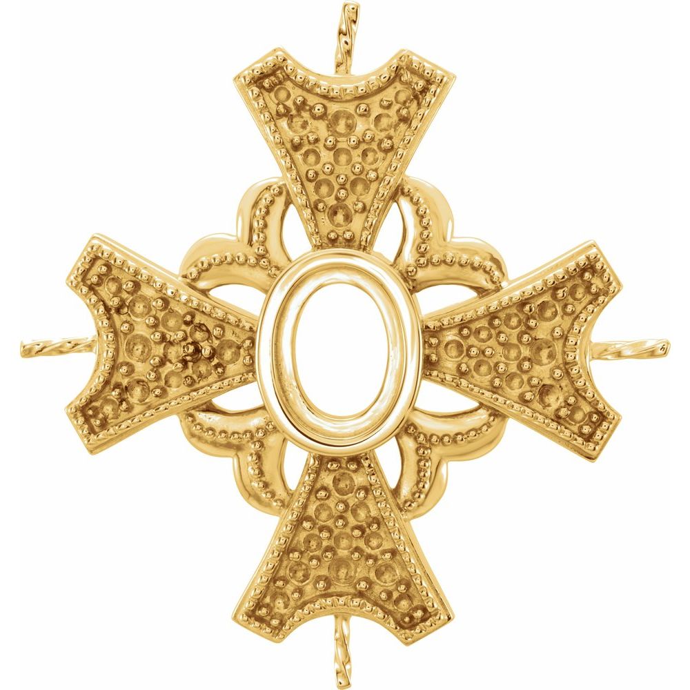 10k Yellow Gold Oval Shape Cross Religious Pendant for Approximately 1 1/2 cttw (Mounting Only, Not All Stones Included)