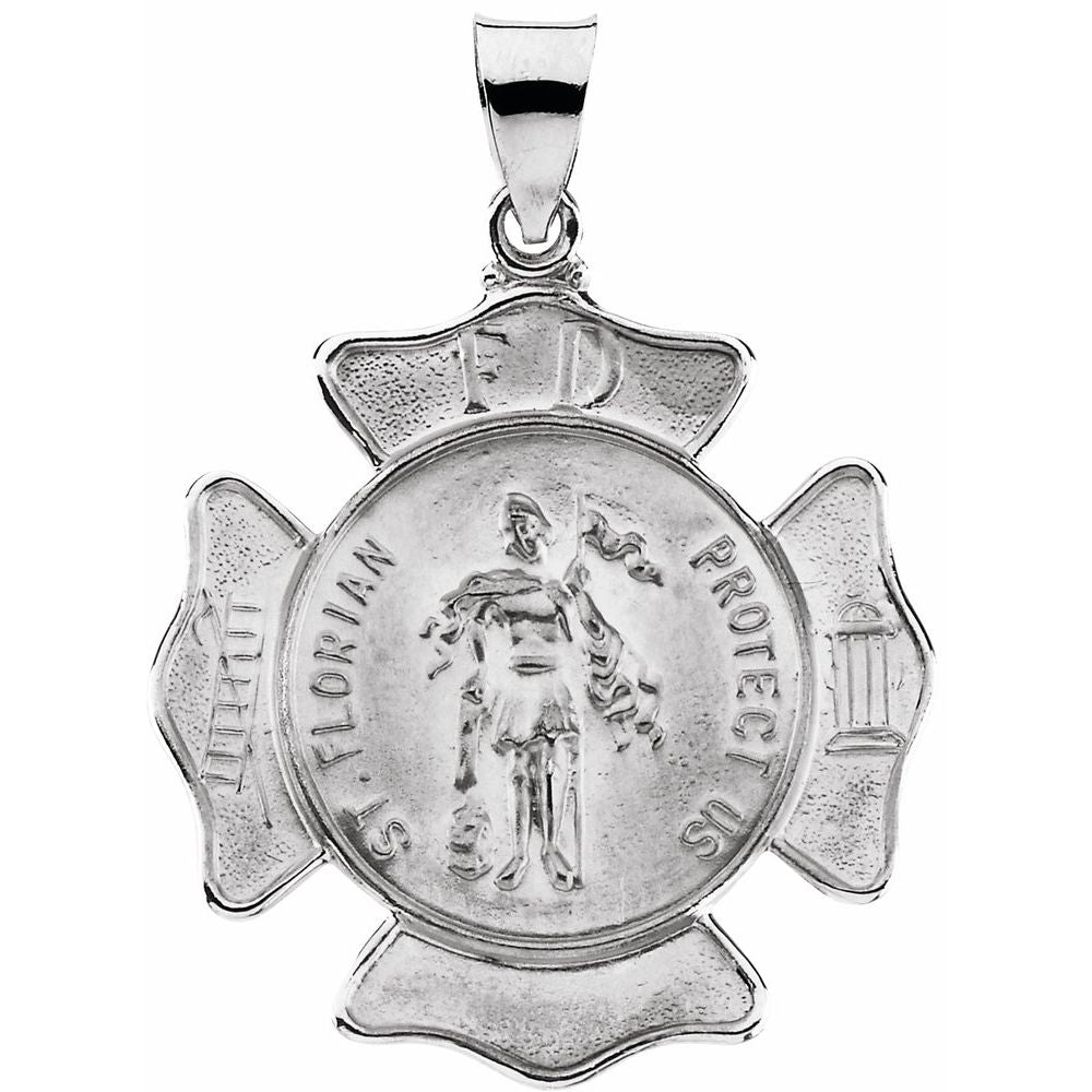 Description: 14k White Gold 25mm Hollow St. Florian Medal