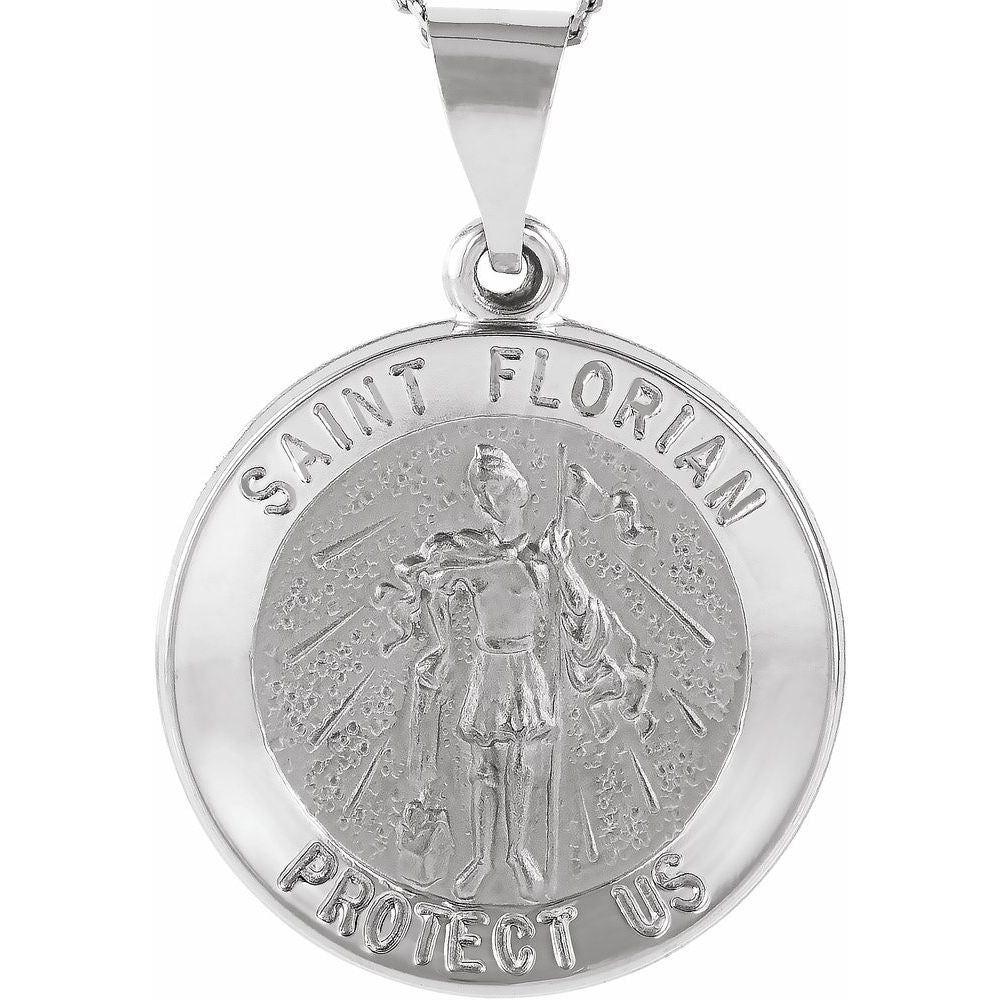 Description: 14k White Gold 18mm Round Hollow St. Florian Medal