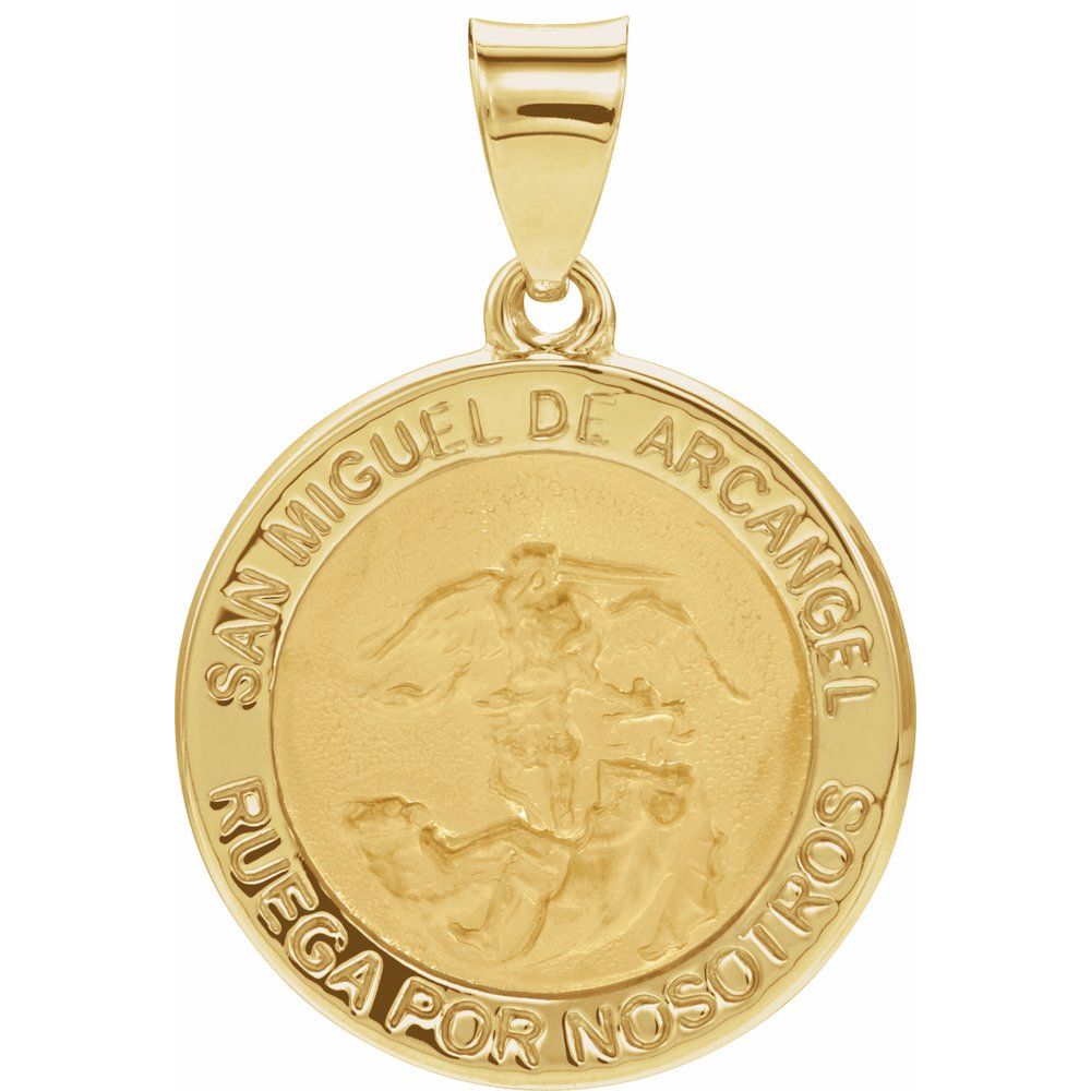 Description: 14k Yellow Gold 18x18mm Round Hollow St. Michael Medal