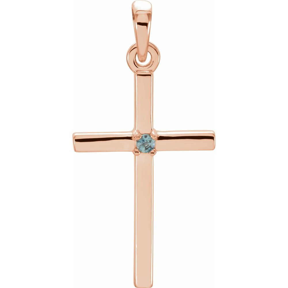 14k Rose Gold Round Shape Alexandrite Cross Religious Pendant (22.65x11.4mm)