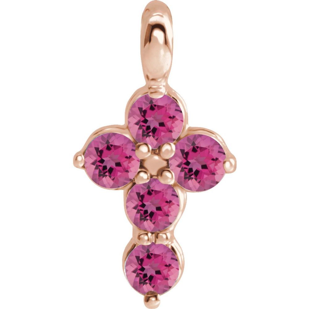 14k Rose Gold Round Shape Pink Tourmaline Cross Religious Pendant (11.5x6.1mm)
