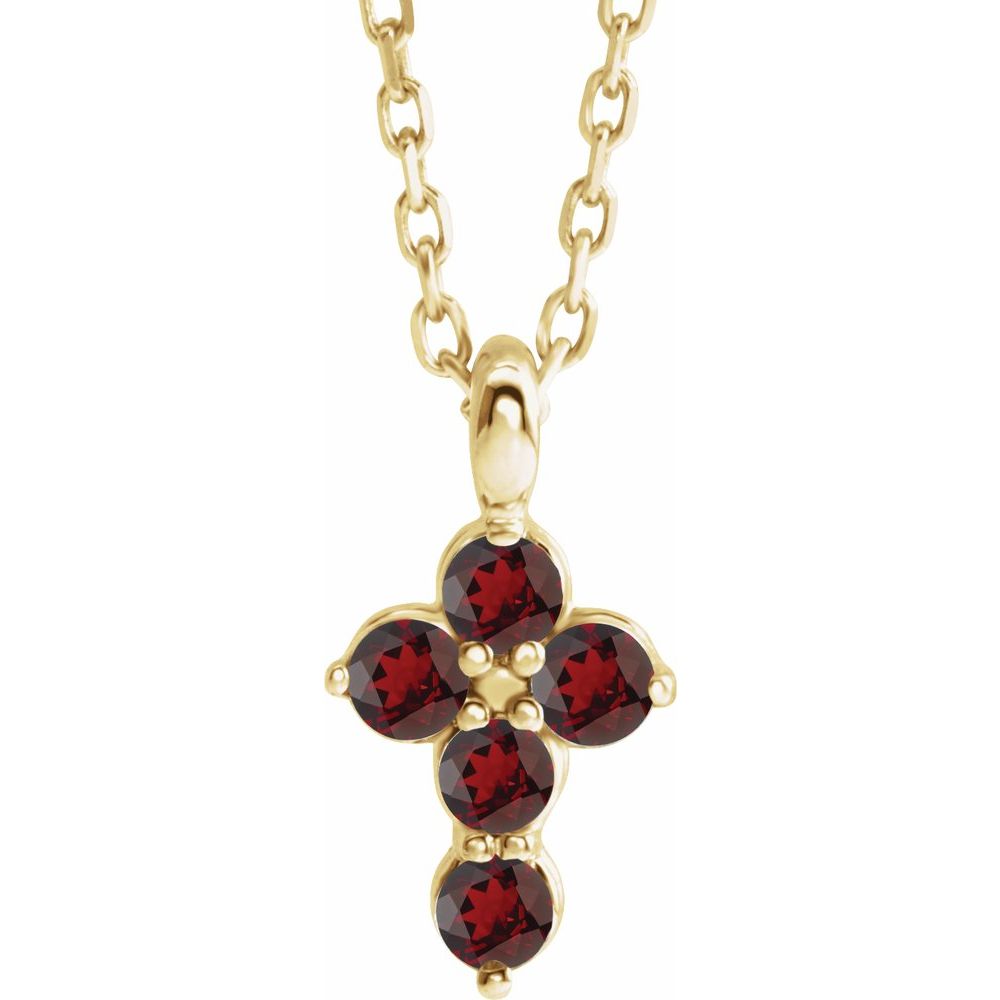 14k Yellow Gold Round Shape Mozambique Garnet Religious Cross Necklace (11.5x6.1mm), 16-18"