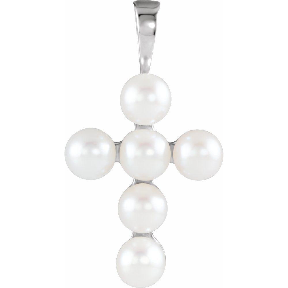 14k White Gold Freshwater Cultured Pearl Cross Religious Pendant (22.98x12.39mm)