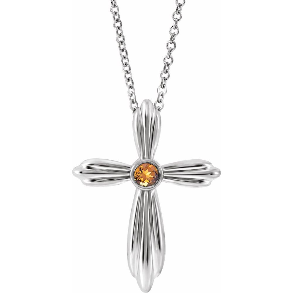 Description: 14k White Gold Citrine Cross 16-18" Necklace