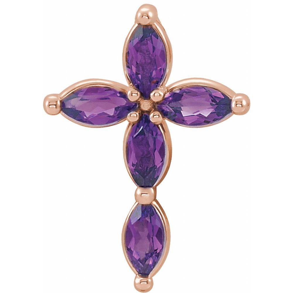 14k Rose Gold Marquise Shape Amethyst Cross Religious Pendant (14.72x10.66mm)