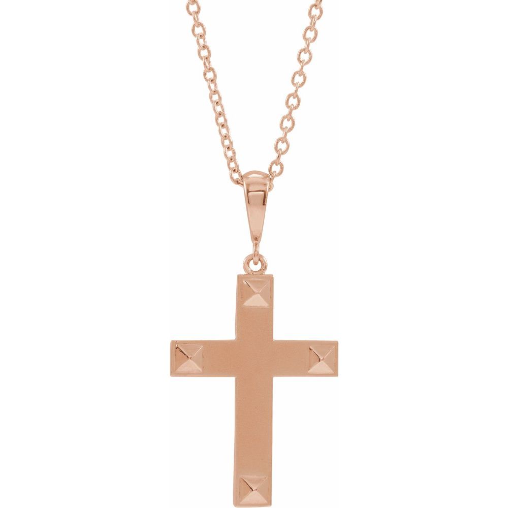 14k Rose Gold Religious Cross Necklace (27.3x18mm), 20"