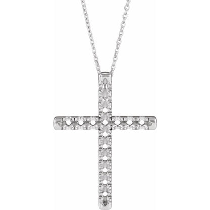 Description: Sterling Silver 2.5mm Round 16-Stone French-Set Cross 16-18" Necklace Mounting