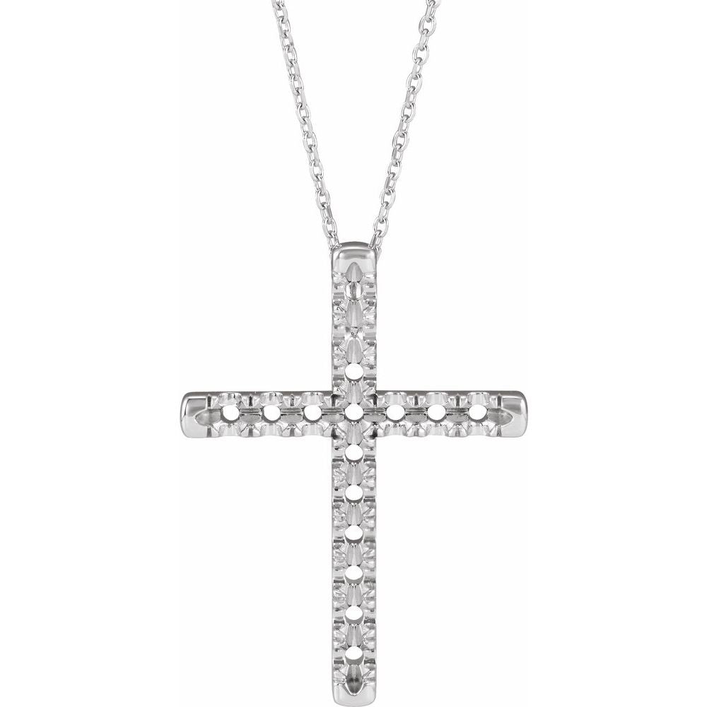 Description: Platinum 2.4mm Round 16-Stone French-Set Cross 16-18" Necklace Mounting