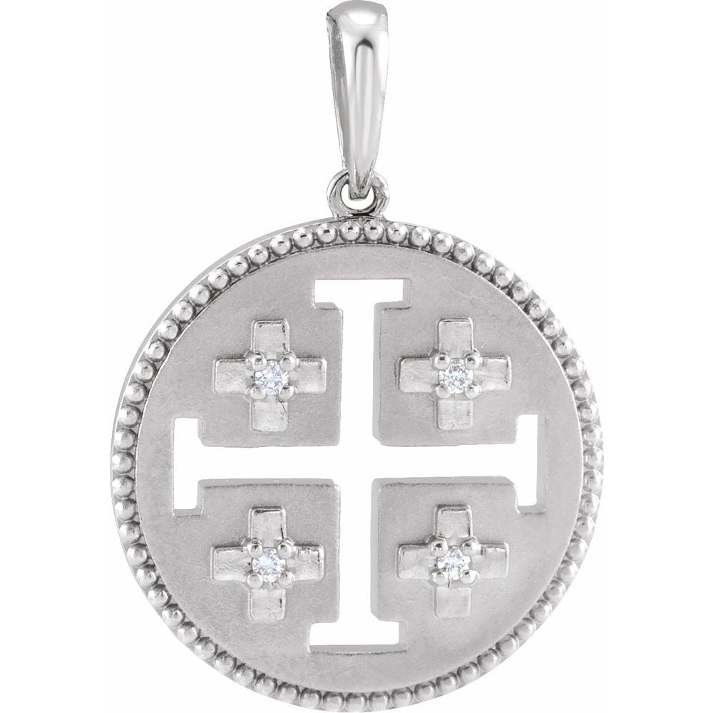 Description: 14k White Gold .025 cttw Diamond Jerusalem Cross Pendant