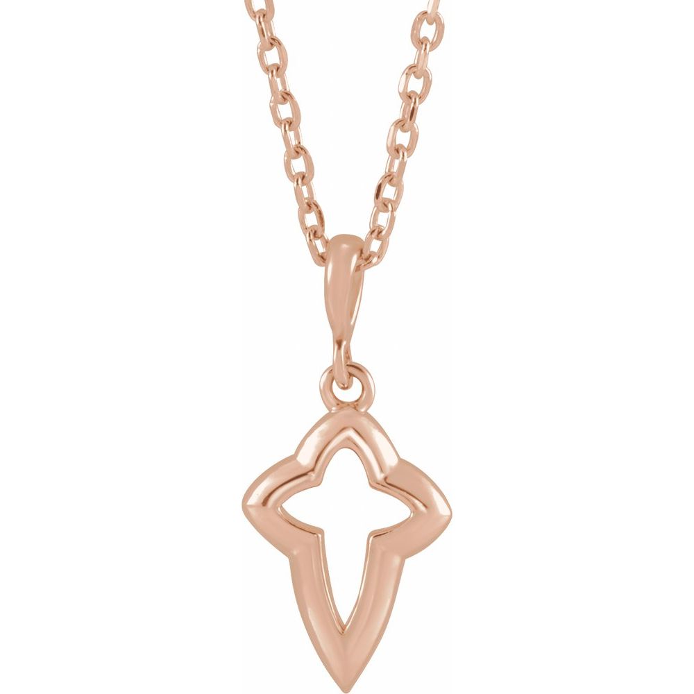 14k Rose Gold Petite Open Religious Cross Necklace (14.92x7mm), 16-18"