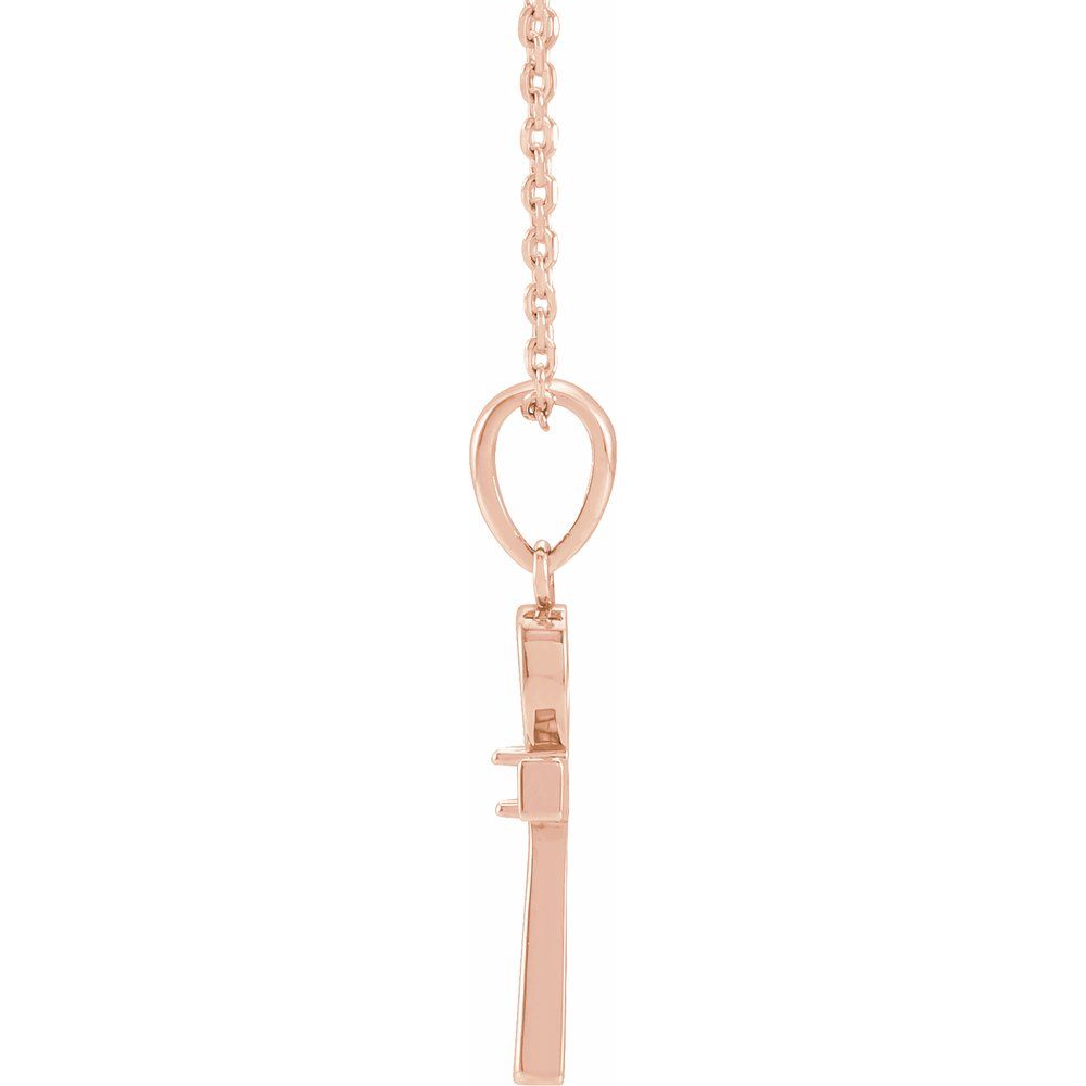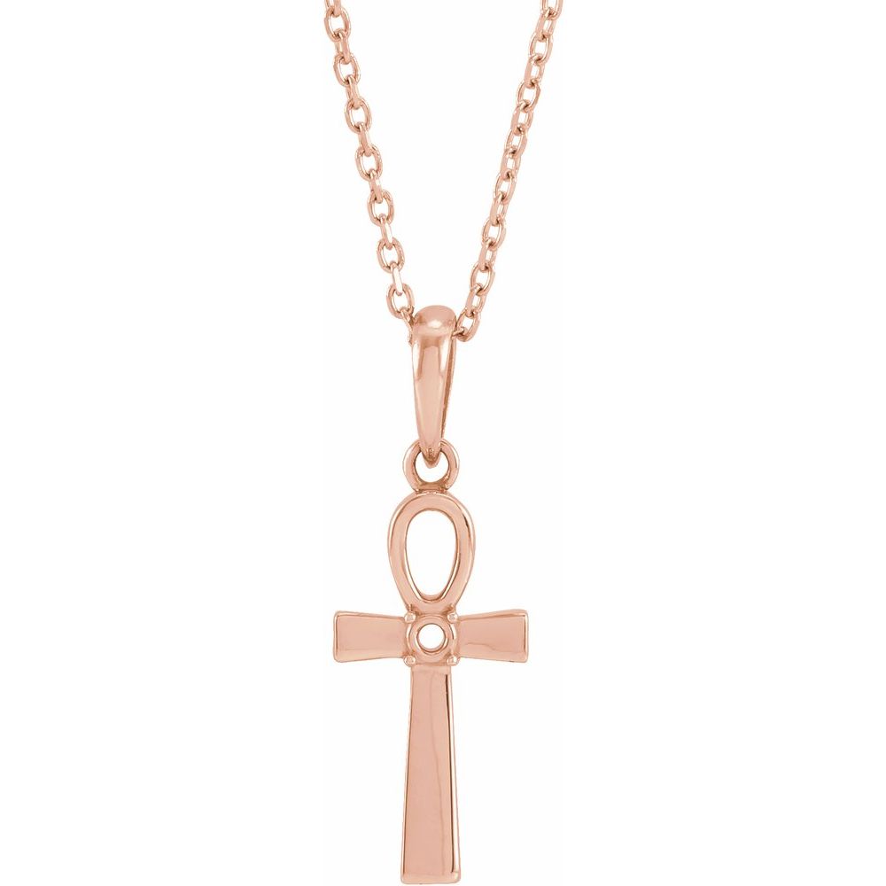 14k Rose Gold 2mm Round Shape Ankh Religious Cross Necklace for Approximately 0.03 cttw (22.29x7.5mm, Mounting Only, Not All Stones Included), 16-18"