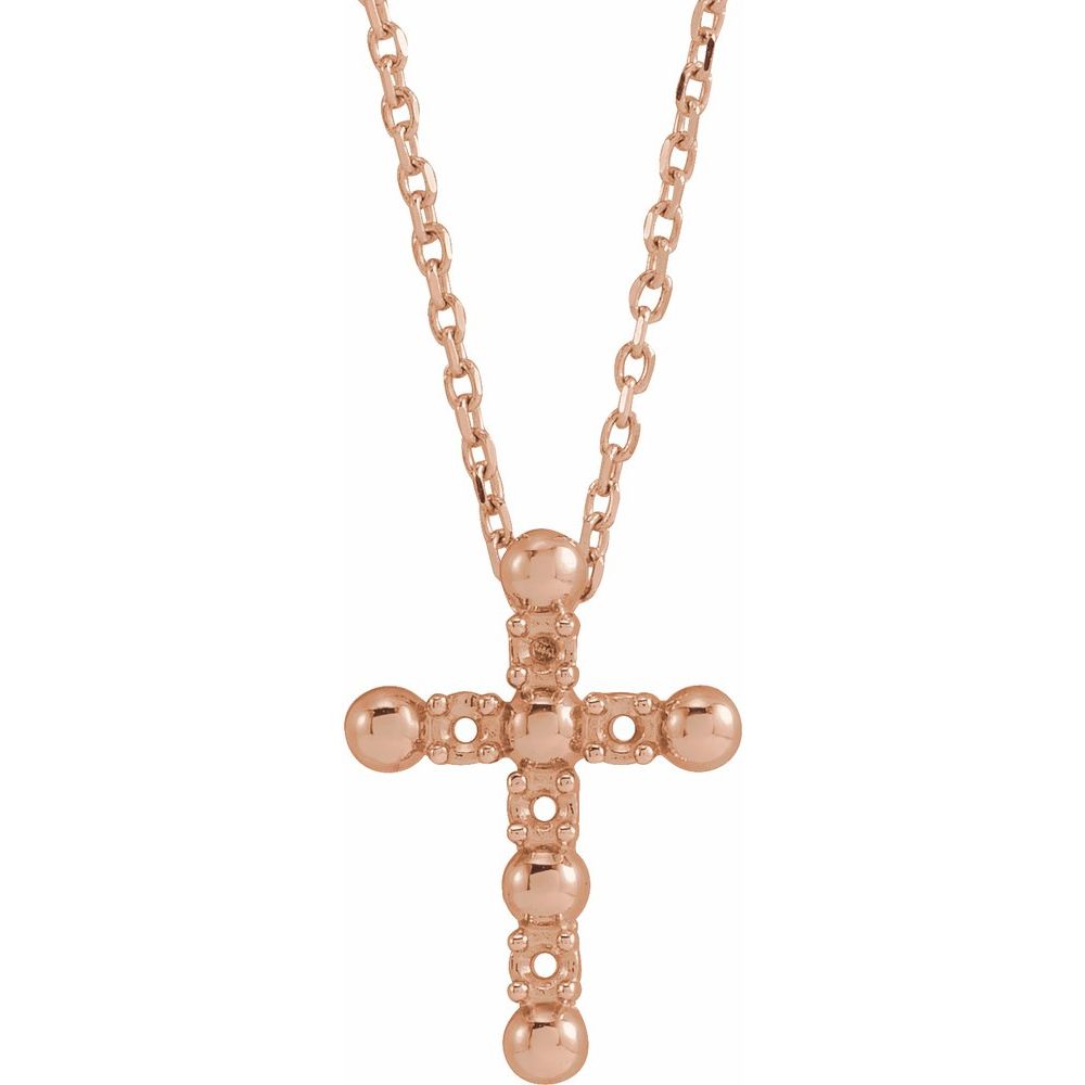 Description: 14k Rose Gold 1.5mm Round Beaded Cross 16-18" Necklace Mounting
