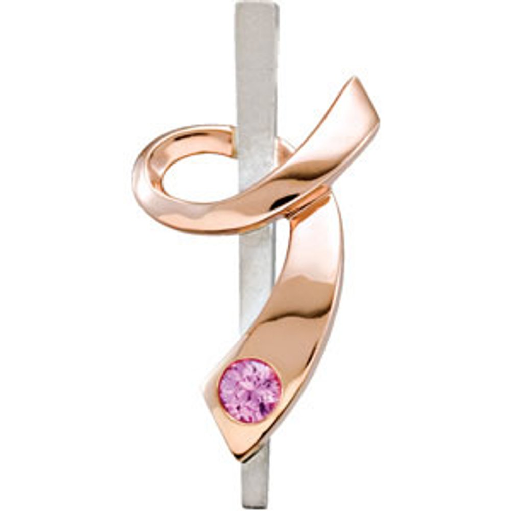 Description: 14k Rose Gold-Plated Sterling Silver Imitation Pink Tourmaline Ribbon of Courage 29.8mm Pendant