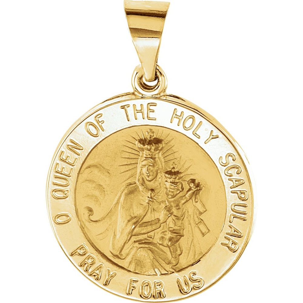 14k Yellow Gold Round Shape Hollow Scapular Saint Medal Religious Pendant (18x18mm)