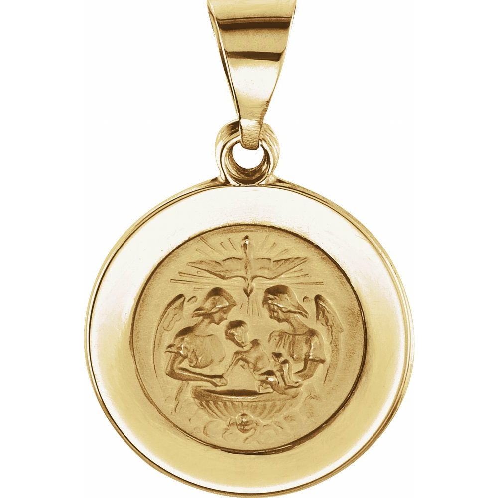 14k Yellow Gold 14.75mm Round Shape Hollow Baptismal Medal Religious Pendant