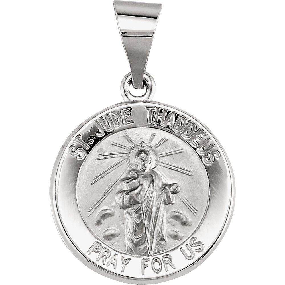 Description: 14k White Gold 15mm Round Hollow St. Jude Medal