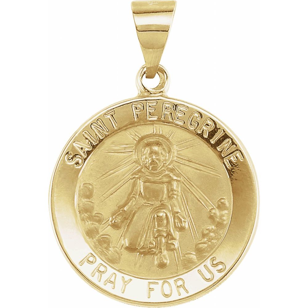 Description: 14k Yellow Gold 18mm Round Hollow St. Peregrine Medal