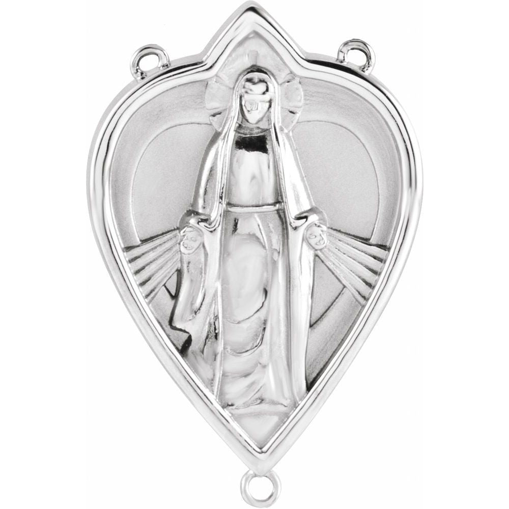 Description: 10k White Gold 23.8x15.6mm Miraculous Mary Rosary Center