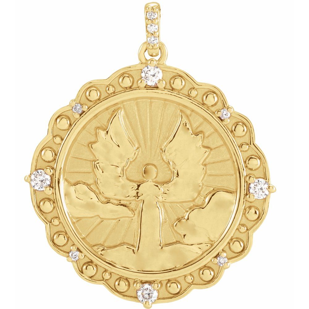 14k Yellow Gold Round Shape Diamond Guardian Angel Religious Pendant (31.25x24.39mm, 1/6 cttw, G-H, I1)