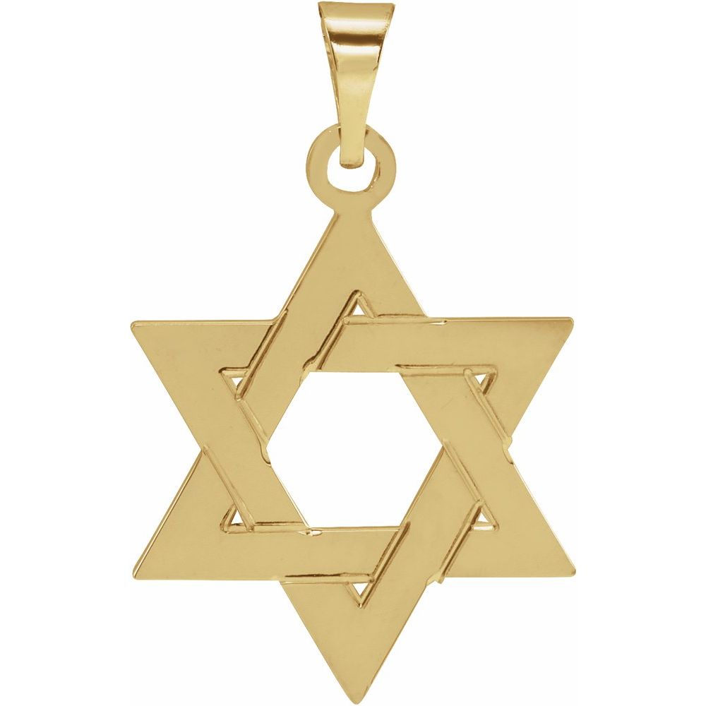 14k Yellow Gold Star of David Religious Jewish Judaica Pendant (17x15mm)