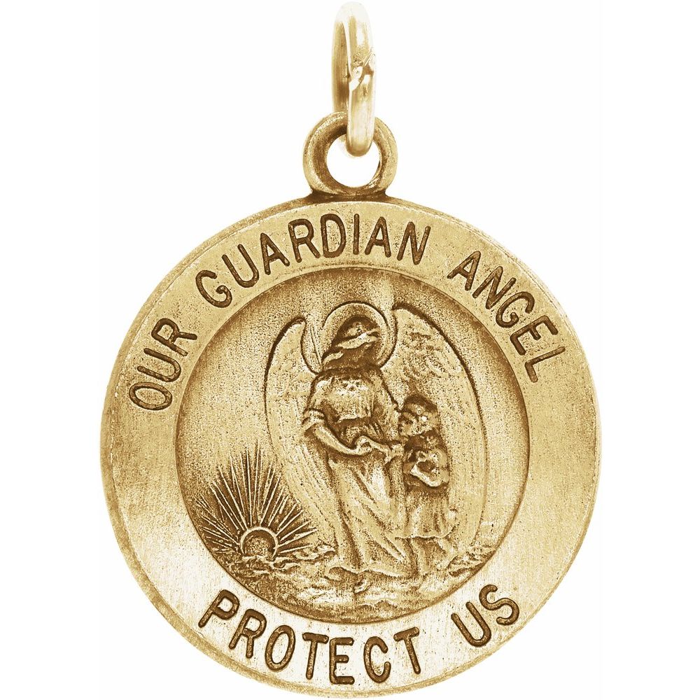 Description: 14k Yellow Gold 15mm Guardian Angel Medal