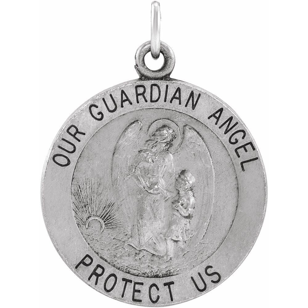 Description: Sterling Silver 15mm Guardian Angel Medal