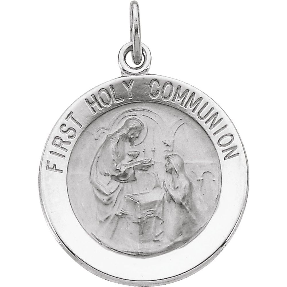 14k White Gold 18mm First Communion Medal Religious Pendant