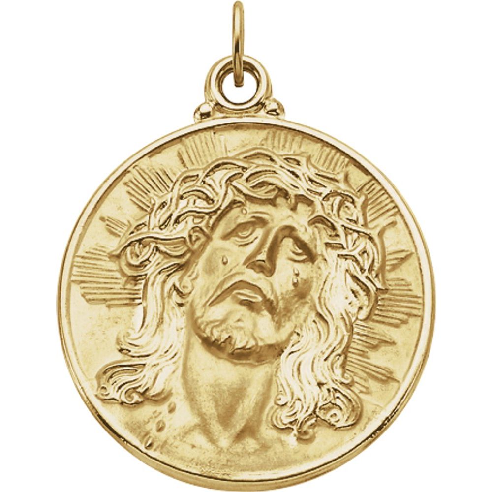 Description: 14k Yellow Gold 28mm Round Face of Jesus (Ecce Homo) Medal