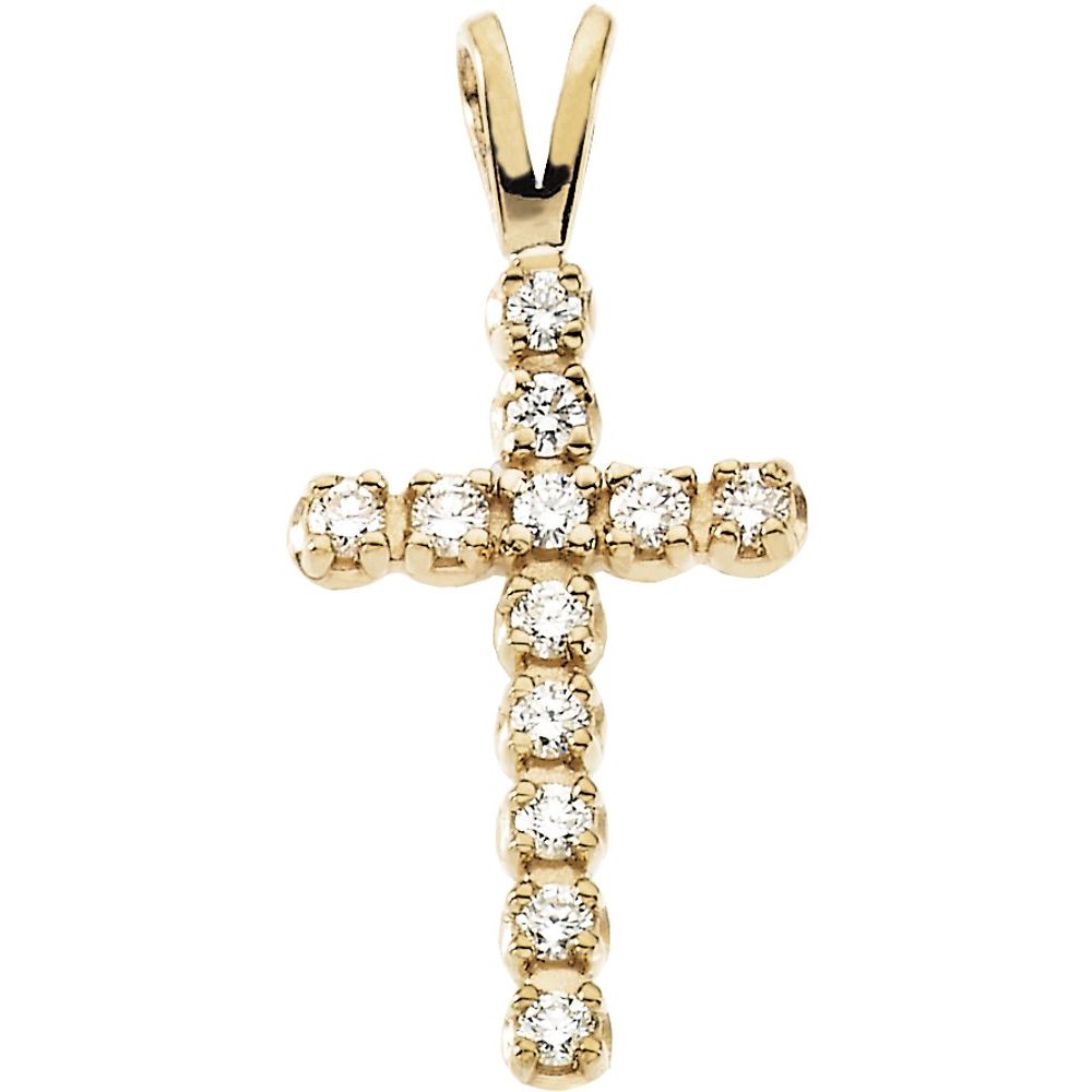 14k Yellow Gold 1.3mm Round Shape Cross Religious Pendant for Approximately 1/8 cttw (Mounting Only, Not All Stones Included)