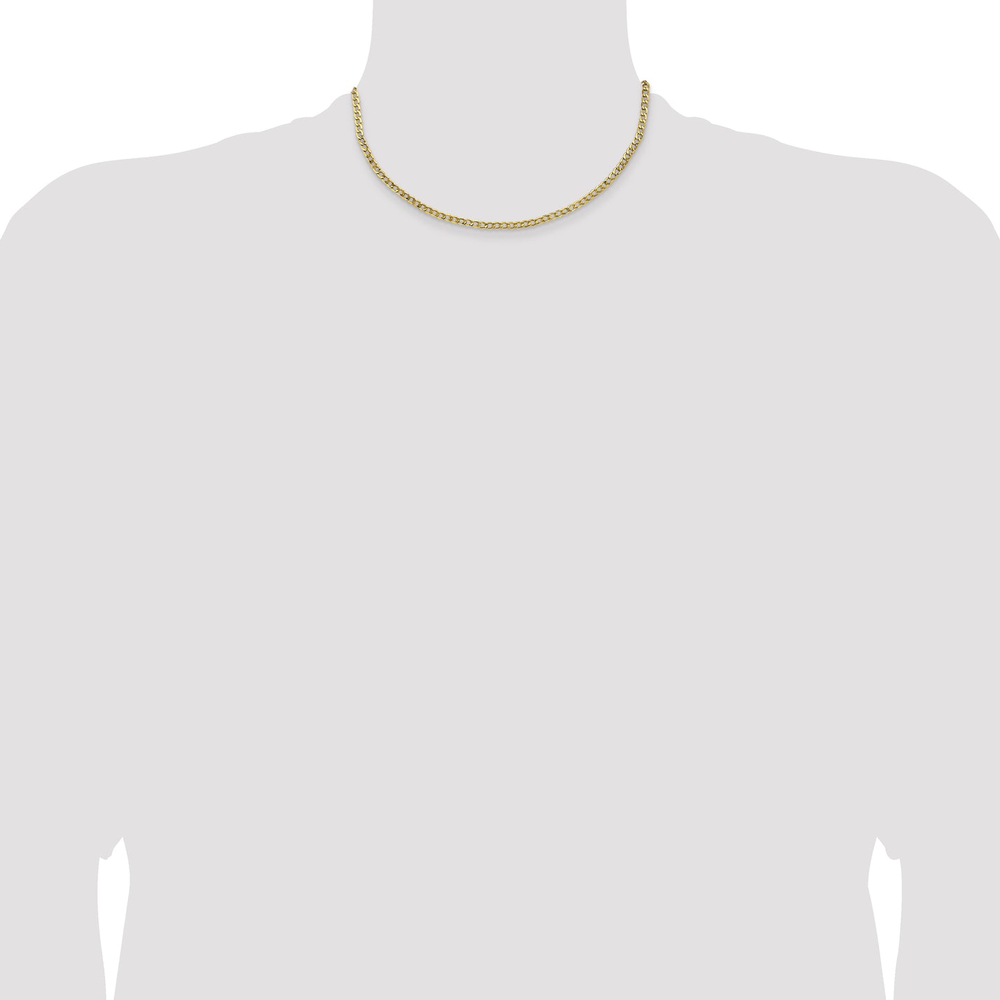 10k Yellow Gold 3.35mm Semi-Solid Curb Link Chain Necklace, 16"