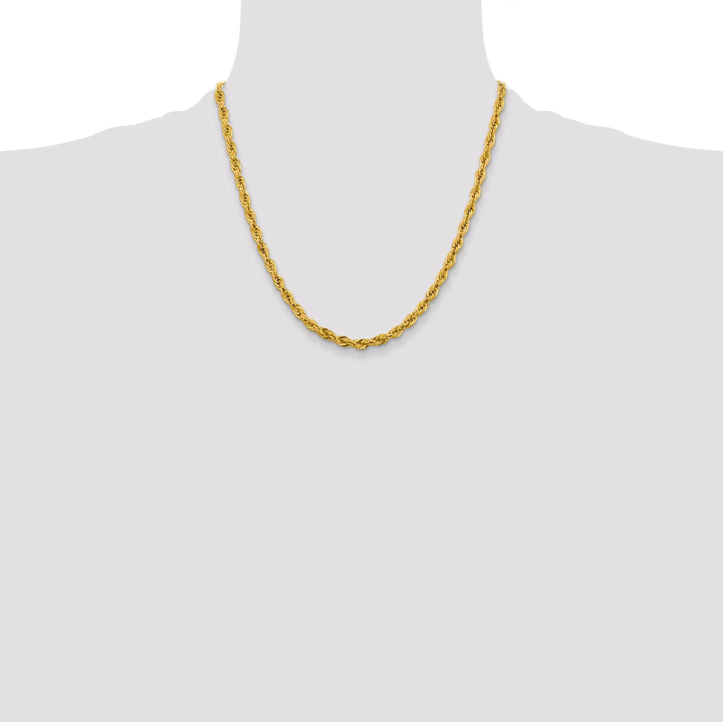 10k Yellow Gold 4.25mm Semi-Solid Rope Chain Necklace, 20"