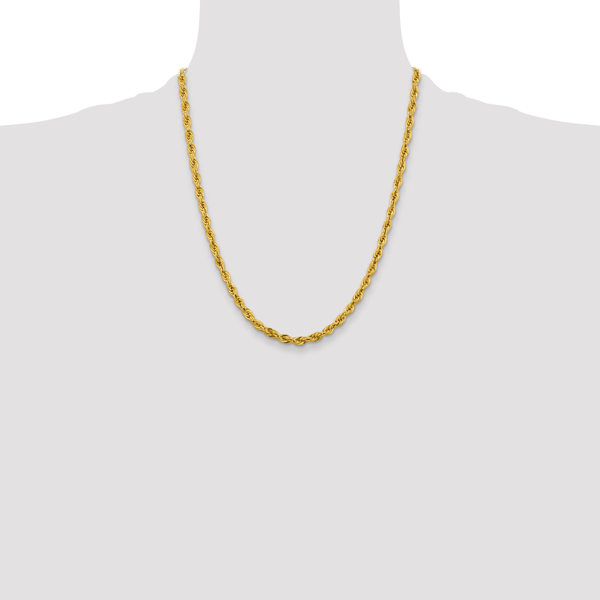 10k Yellow Gold 4.25mm Semi-Solid Rope Chain Necklace, 22"
