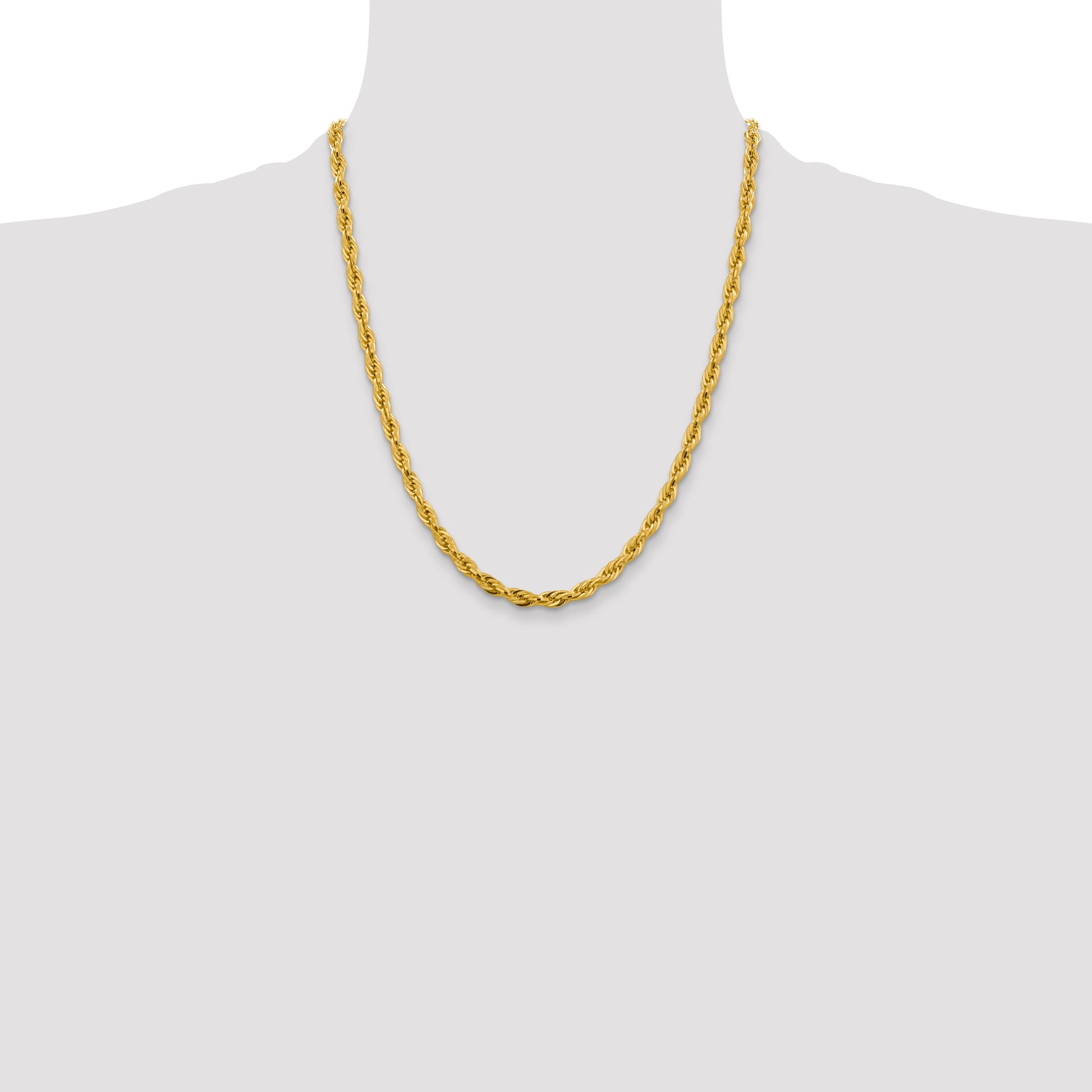 10k Yellow Gold 4.75mm Semi-Solid Rope Chain Necklace, 22"