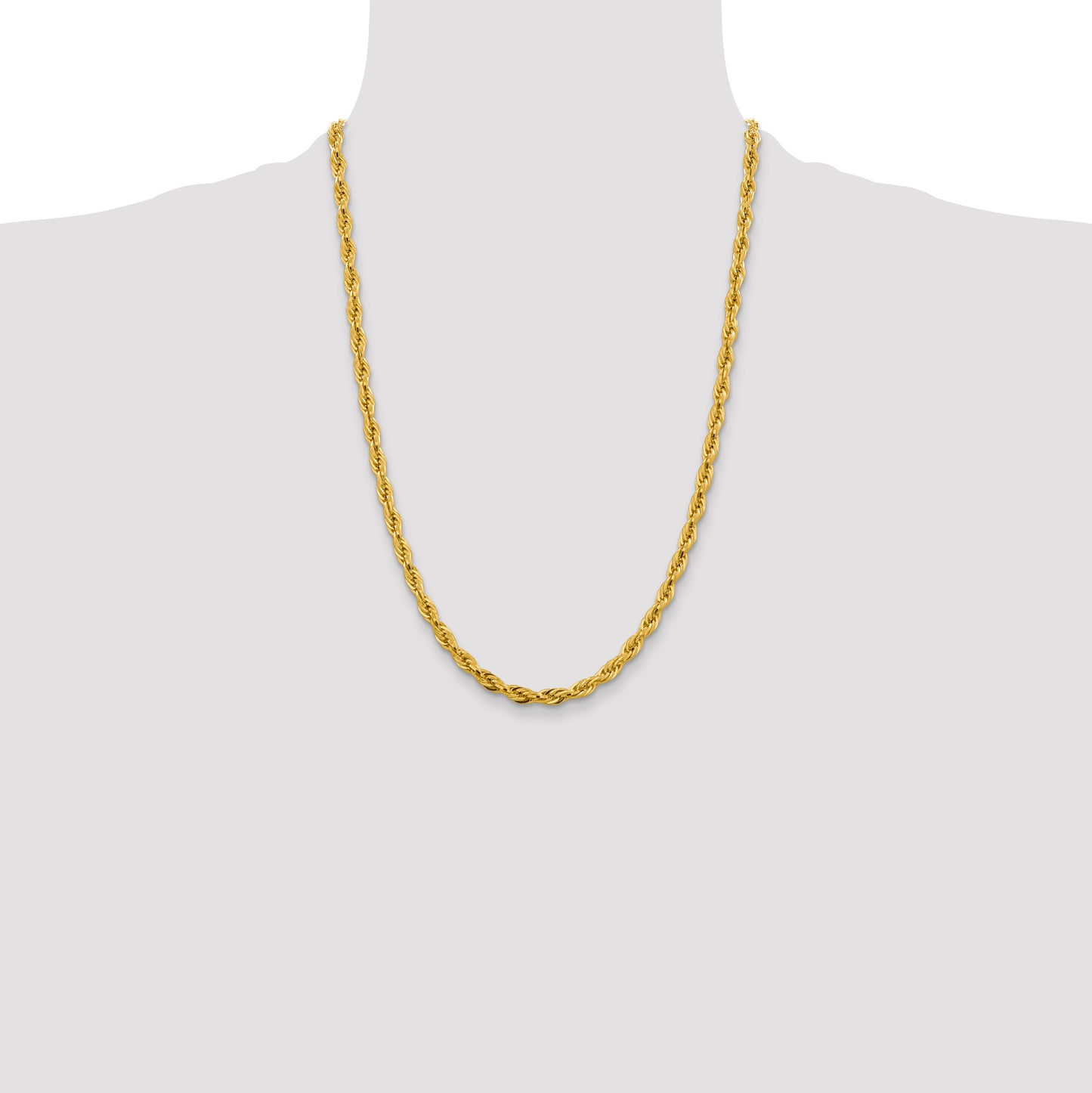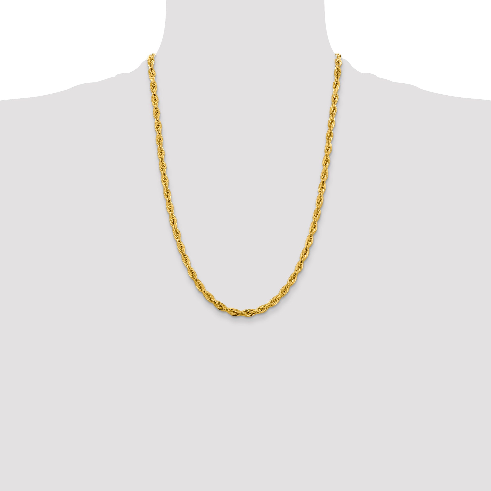 10k Yellow Gold 4.75mm Semi-Solid Rope Chain Necklace, 24"