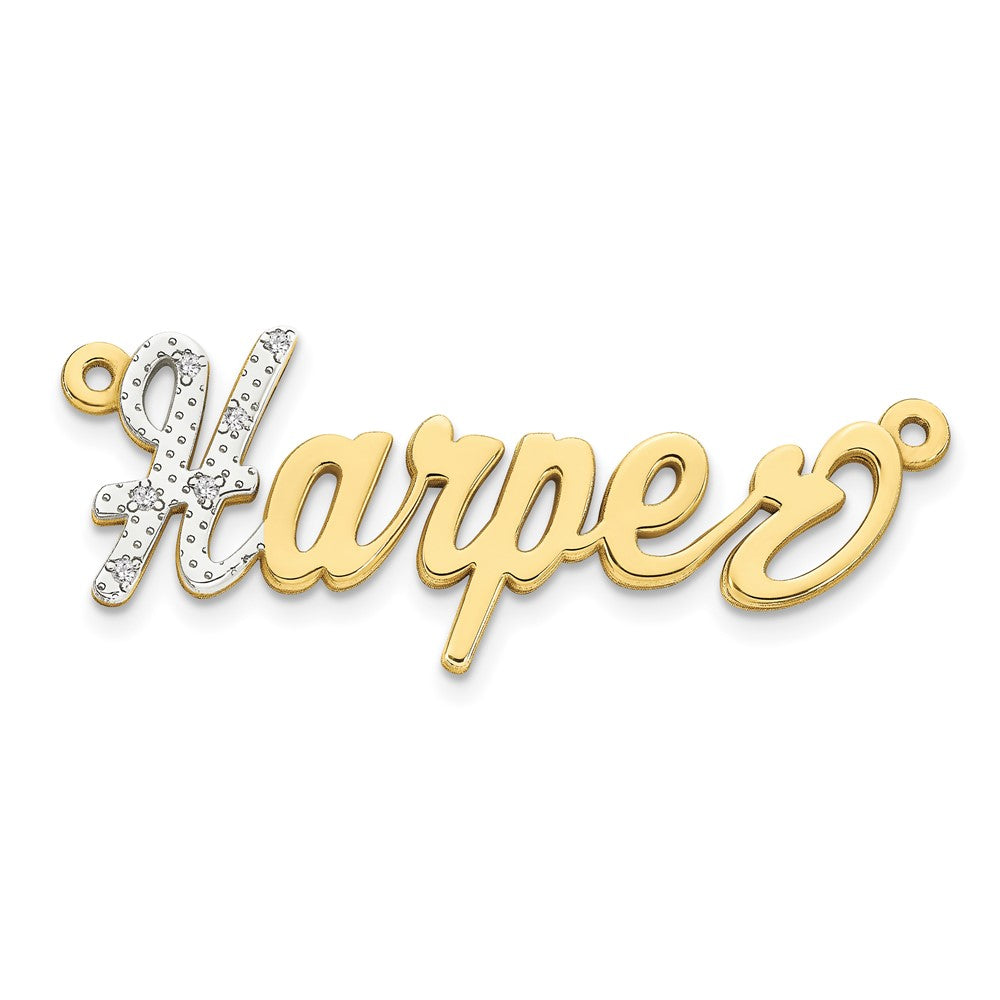 10k Yellow Gold and Rhodium Plated 3-Dimensional Diamond Name Plate Pendant