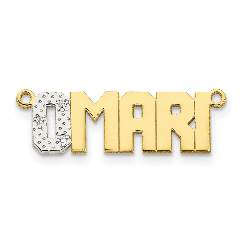 10k Yellow Gold and Rhodium Plated Diamond Name Plate Pendant