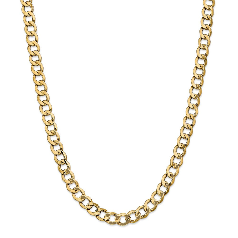 14k Yellow Gold 8.mm Semi-Solid Curb Link Chain Necklace