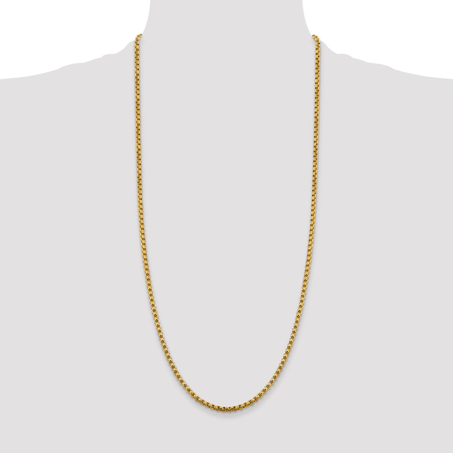 14k Yellow Gold 3.6mm Hollow Round Shape Box Chain Necklace, 30"