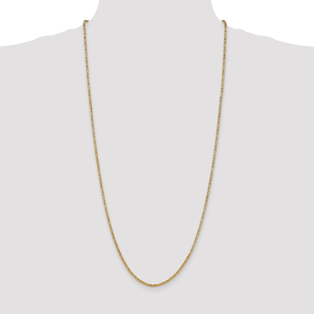 14k Yellow Gold 2mm Byzantine Chain Necklace, 30"