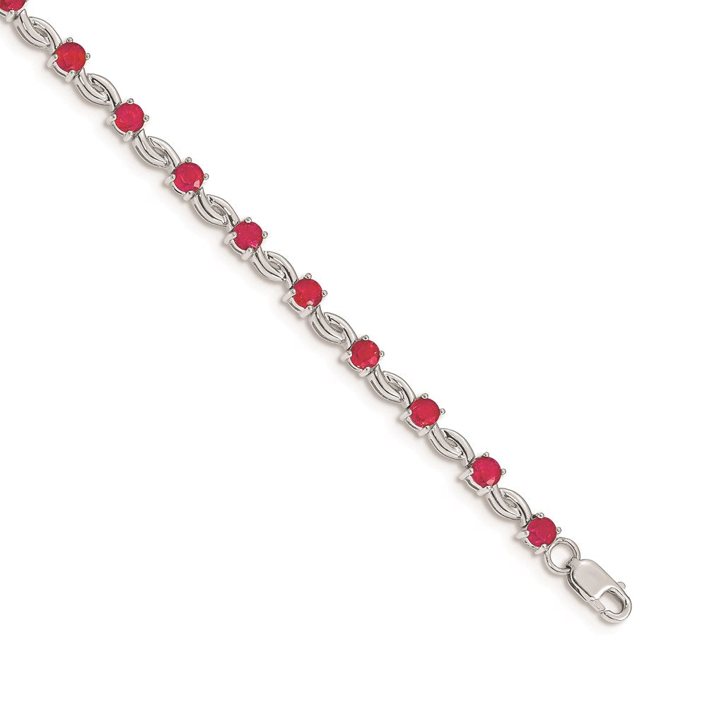 14k White Gold with Composite Ruby Gemstone Bracelet, 7"