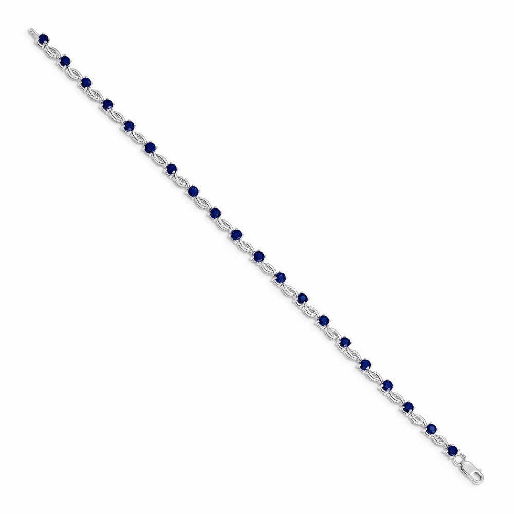 14k White Gold Blue Sapphire Gemstone Bracelet, 7"