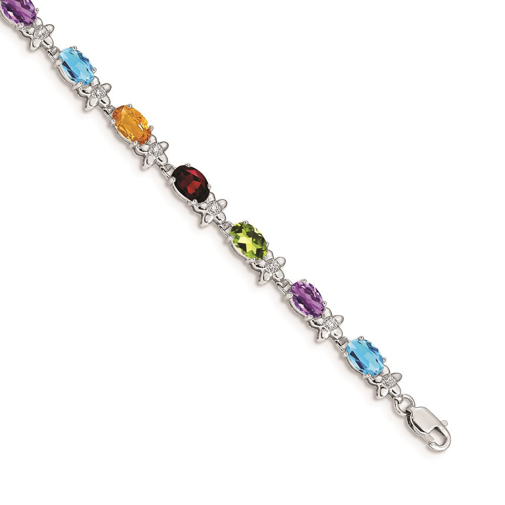 14k White Gold Rainbow Gemstone/Diamond Bracelet, 7"