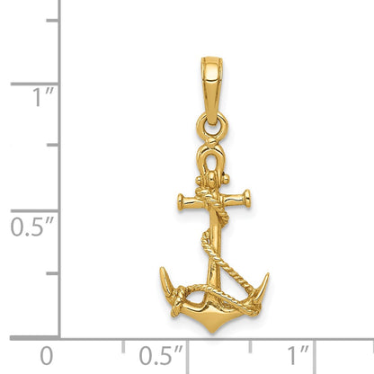 Men's 14k Yellow Gold 3-D Anchor with Shackle and Entwined Rope Pendant