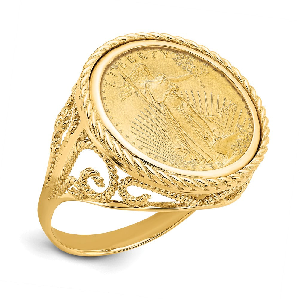 14k Yellow Gold 1/10AE Coin Ring with Coin, Size 7